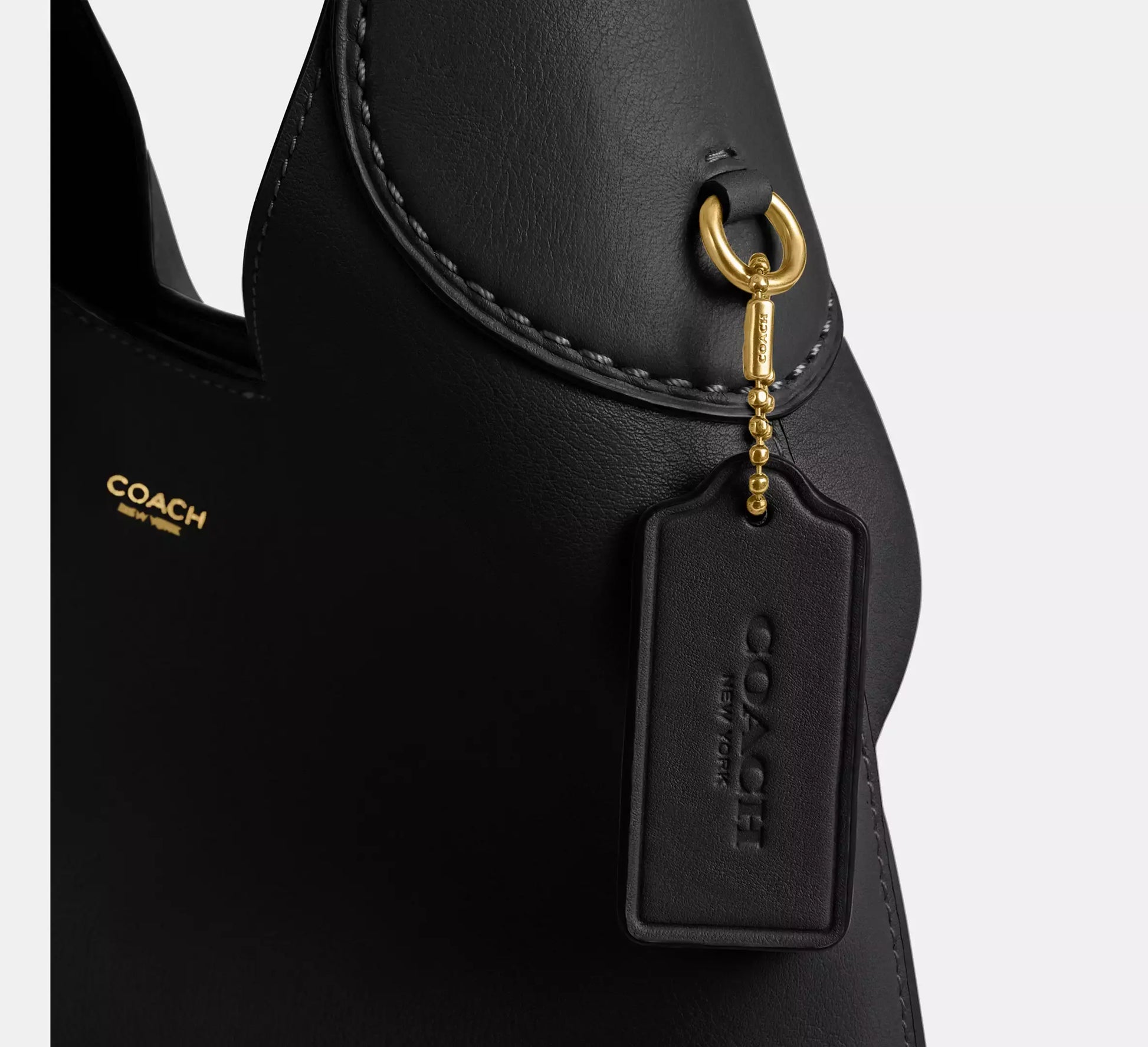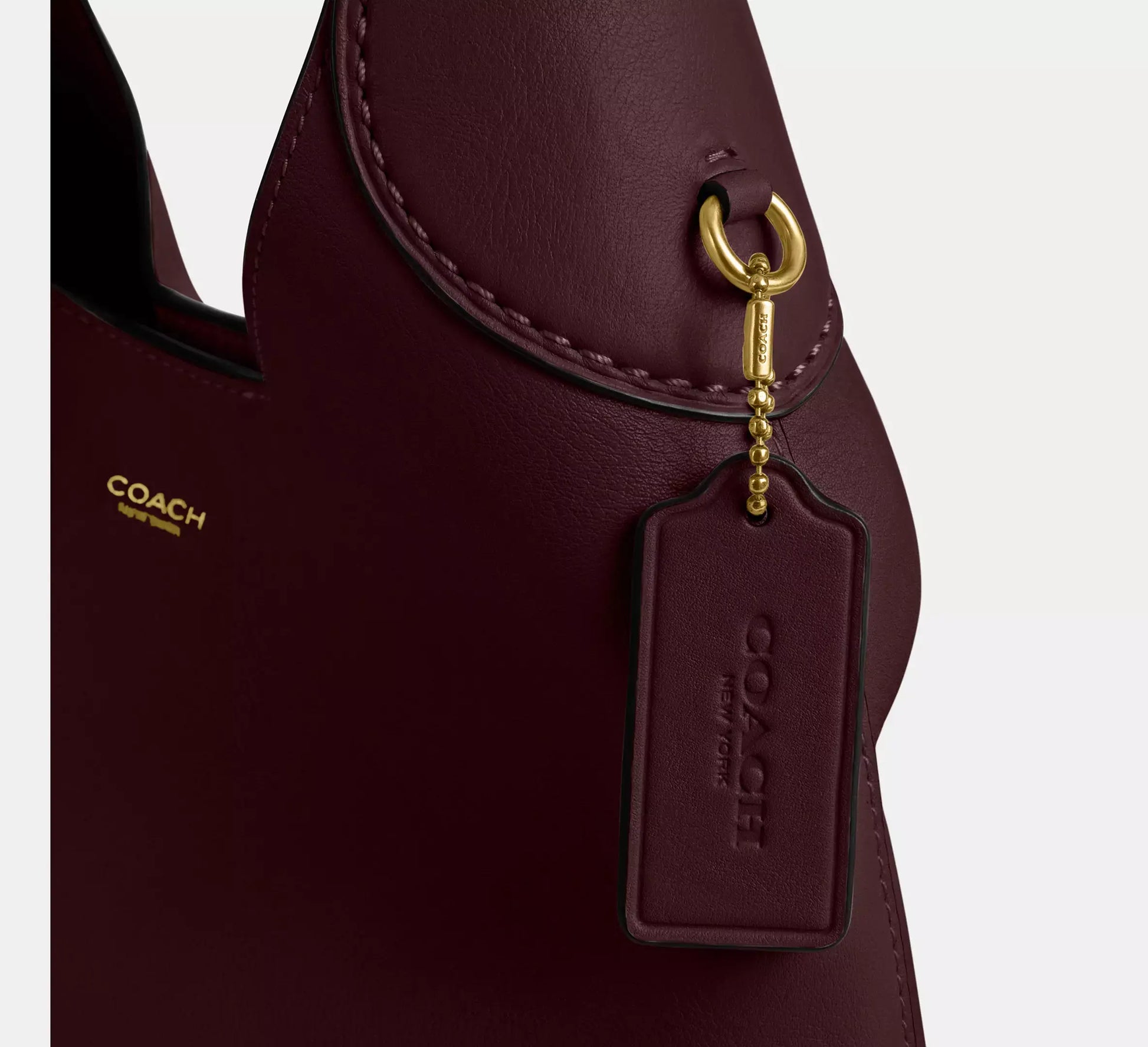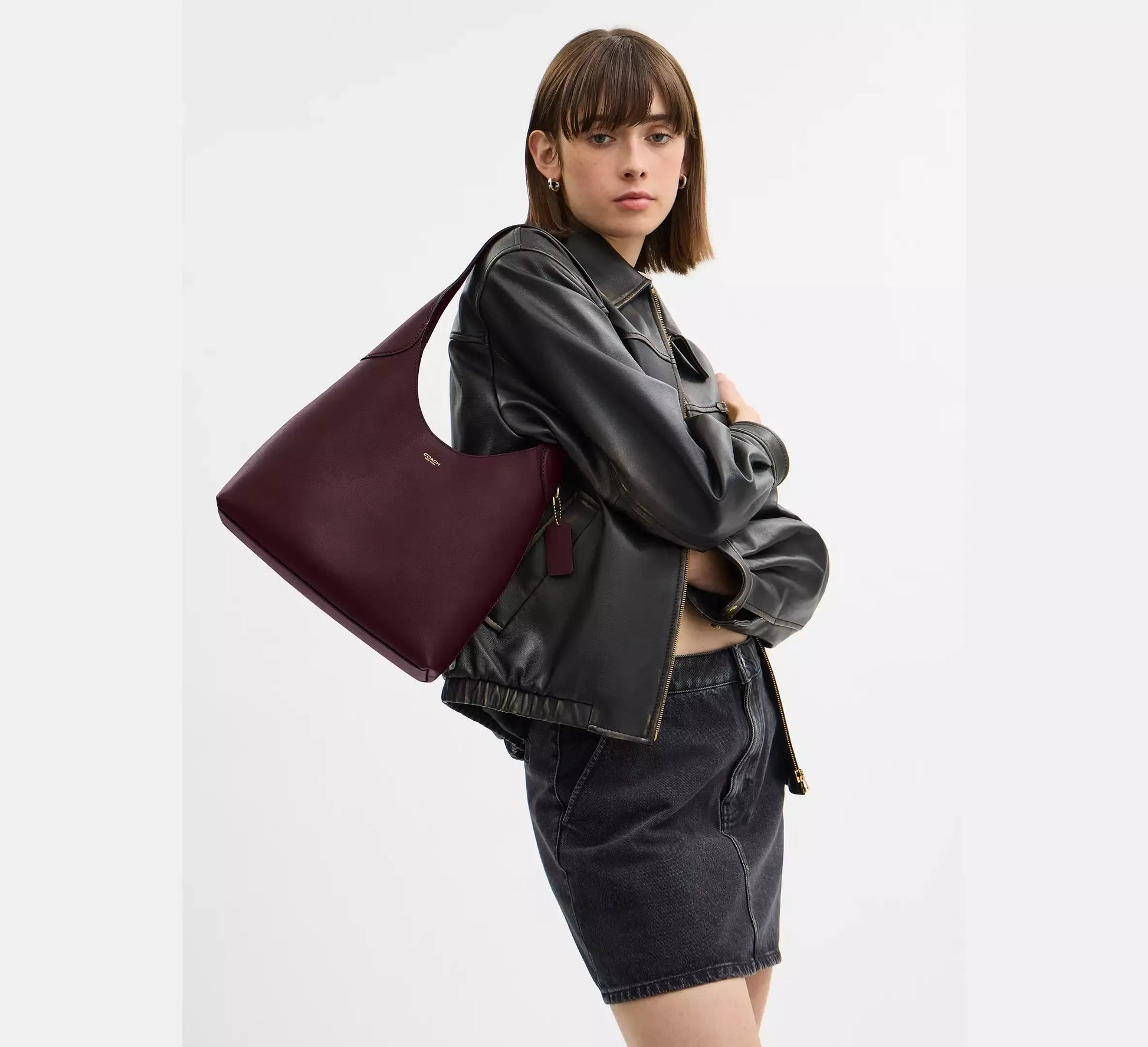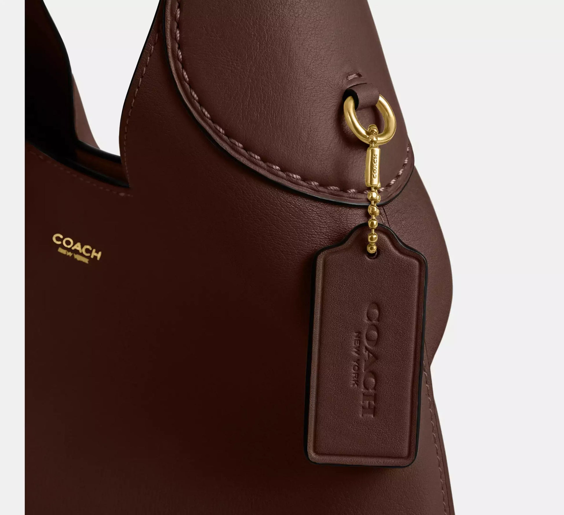 Crafted from polished pebble leather, this bag features a detachable 8.5” handle, 21.5” crossbody strap, multifunction pockets, and a snap closure.